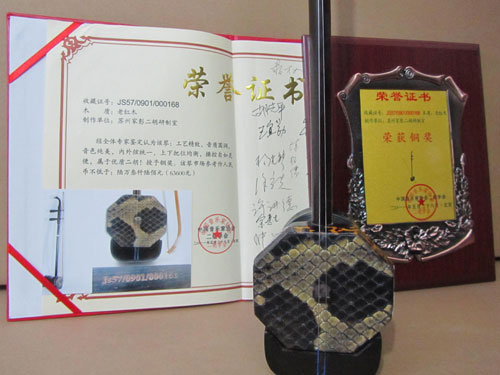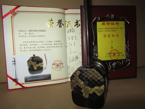 二胡制作大師丁家彭先生1949年出生樂器世家,17歲隨其祖父學(xué)琴藝,并深得精髓,其聰穎好學(xué),悉心鉆研與 探求二胡制作,博得同行的欽佩贊許,更得了許多知名演奏家的稱贊,充分認識到二胡制作每個環(huán)節(jié),都對二胡制作都有影響力,因此對二胡的選材,選料,蟒皮都十分嚴格,二胡整體穩(wěn)定性良好,環(huán)境干擾影響極小。